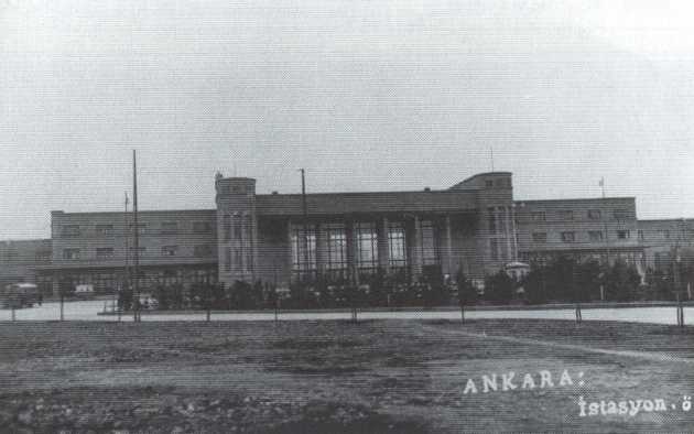 Old Ankara station from the street: the new building on left which still exists today is mid 1930. Col G. Tunçbilek