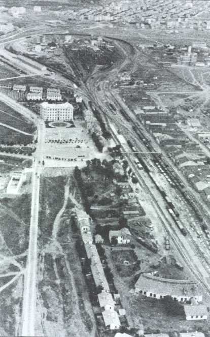 A very nice aerial picture of the station of the early 1950's. There is not yet a cover on the platform. All the main buildings are now finished but the station seems to be almost in the countryside. Col G. Tunçbilek