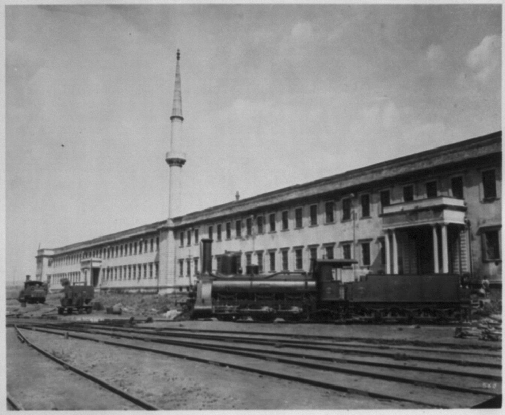 The station had a small turntable and a few tracks to service steam engines in front of the building of the military medical schools which predates the railway. This turntable was removed during the electrification works 1954-1955 to make for stabling facilities for the EMUs. The main facilities for engine servicing were located 7km away, in Yedikule, on a large piece of land which was pretty much country side in those days.