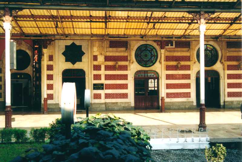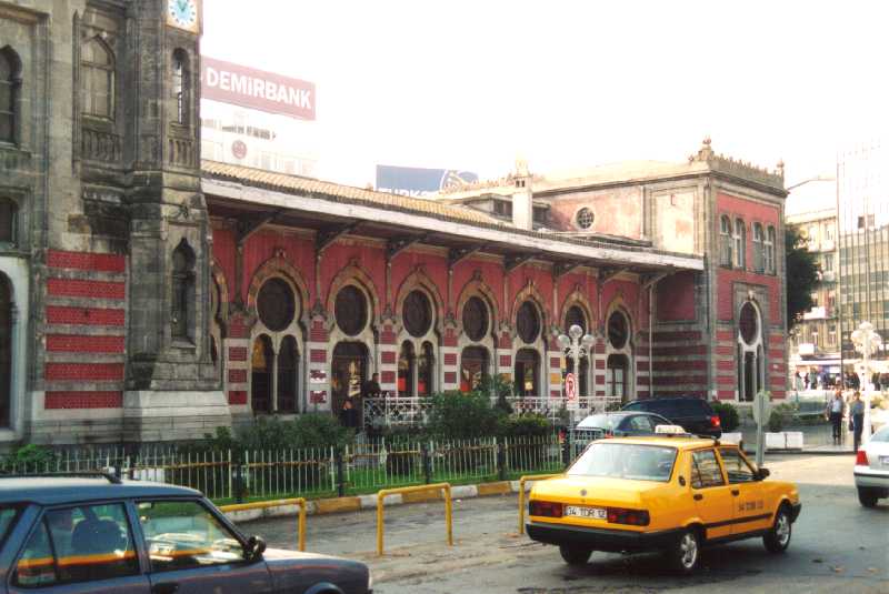 The current building has been preserved in its original state. Inside, one can easily imagine the ambiance at the departure of the Simplon Orient Express in 1920. But the station surroundings changed very much since 1890. In those days there were hardly any buildings around. The passengers were in pleasant setting of garden and trees, with the ground descending in terraces to the sea. Today the station stands in a chaos of cars and concrete. A gas station is right in front of the station and the seashore is now one of Istanbul main road corridor. The gardens have been turned into parking lots.