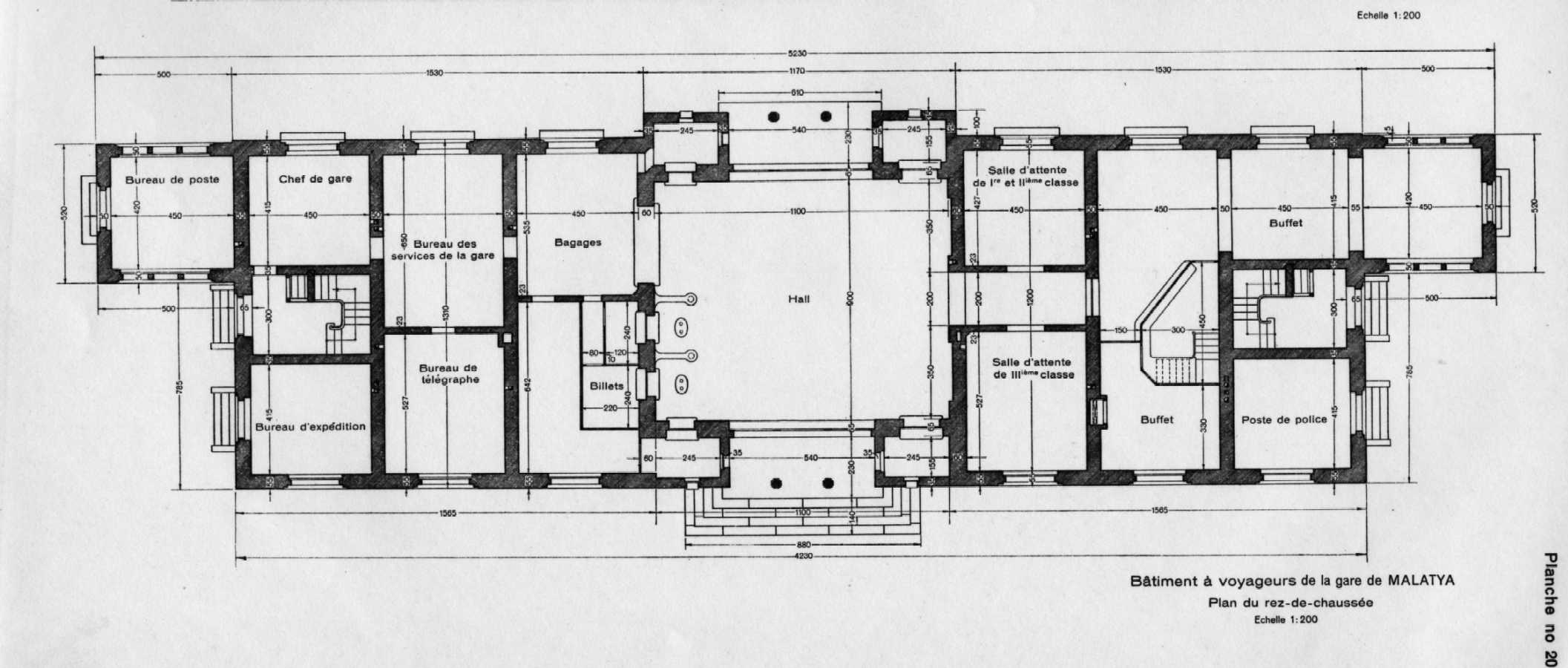 The Danish firm Nyquist and Holm AB (Nohab) was the general contractor for the building of the line Fevzipaşa to Diyarbakır. Nohab which is really a rolling stock manufacturer was in partnership with two fellow building firms: Kampsax and J. Saabye and O. Lerche. These firms made a special "Art Nouveau" design for Malatya station building, which is very different from all the other stations of the line.