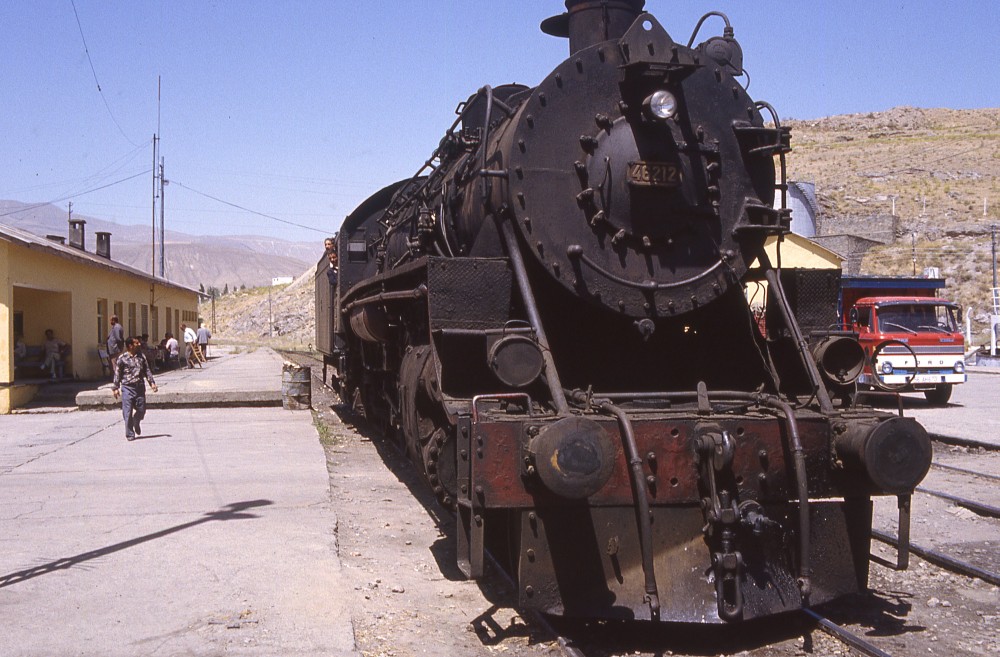 Early morning at Elazığ sees 46214 awaiting its next duty 13 March 1977. Photo Robin Lush