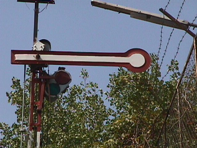 Open position: passing permitted as far as the entrance points and act in accordance with hand signals (flag signals) of the pointsman. Adapazari protection signal. 1 August 2002; Picture Ergin Tönük |