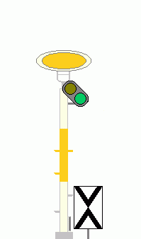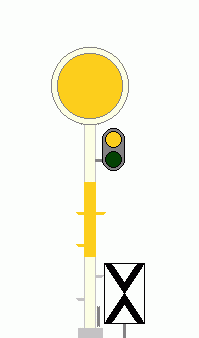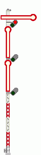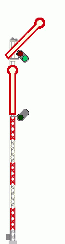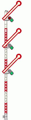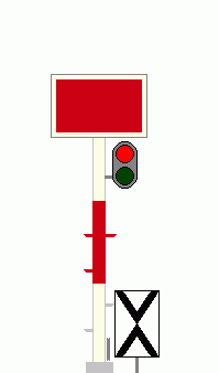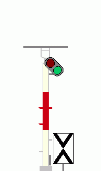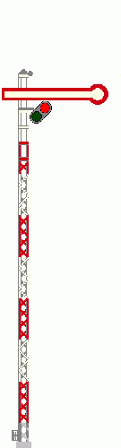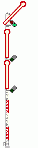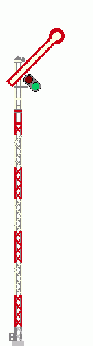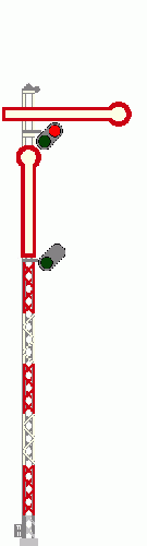 Closed position: The Semaphore Entrance Signal is at stop, or, if placed at the semaphore entrance signal, the Semaphore Exit Signal is at stop. |