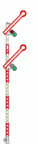 Semaphore Distant Signals are placed 500 meters before the Semaphore Entrance Signal, and, eventually, direct at the Semaphore Entrance Signal.
